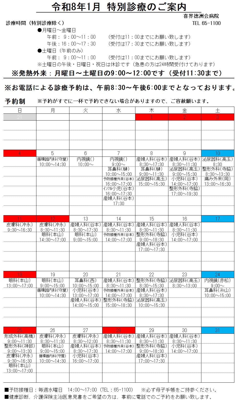 < 1月の特別診療 >
